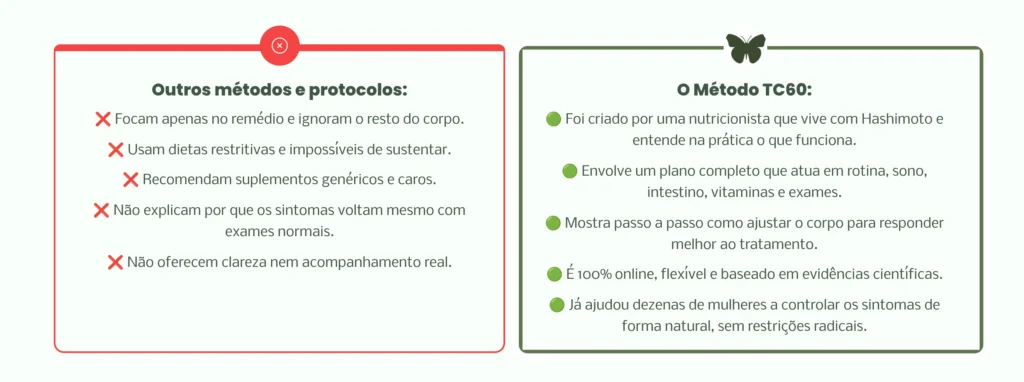 Você talvez não saiba, mas pode controlar muitos dos sintomas da tireoide de forma natural e segura. Com nosso programa exclusivo, você aprenderá a melhorar sua energia, fortalecer o cabelo e equilibrar o peso usando estratégias práticas.